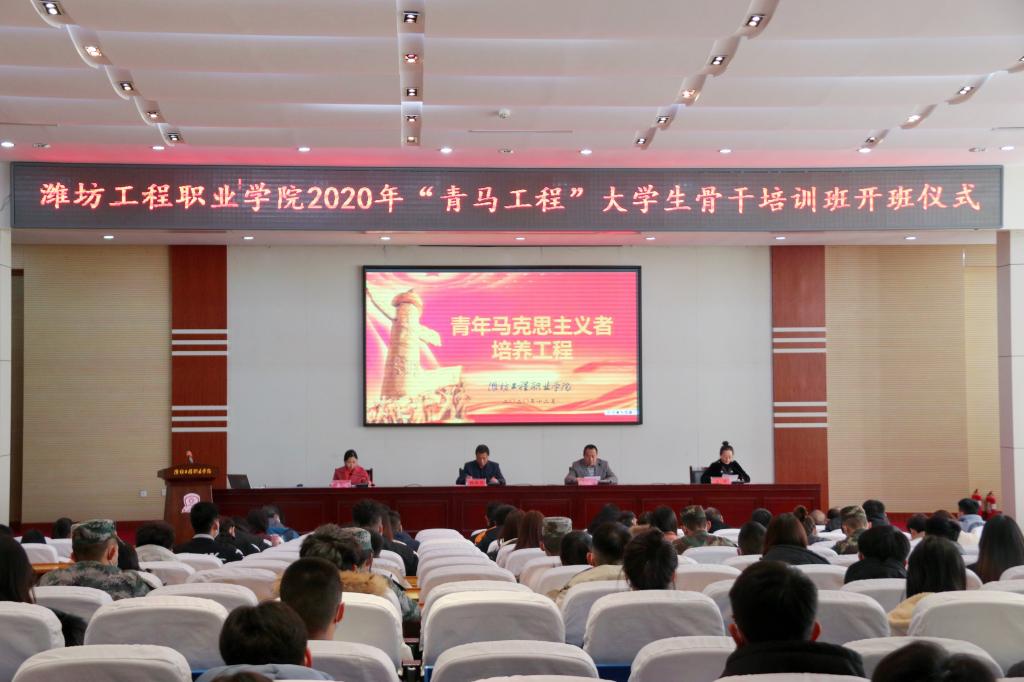 12月3日,潍坊工程职业学院2020年“青马工程”大学生骨干培训班开班仪式在学术报告厅举行。副院长韩振华出席活动。团委学生处、各系院有关同志及青马学员参加活动。