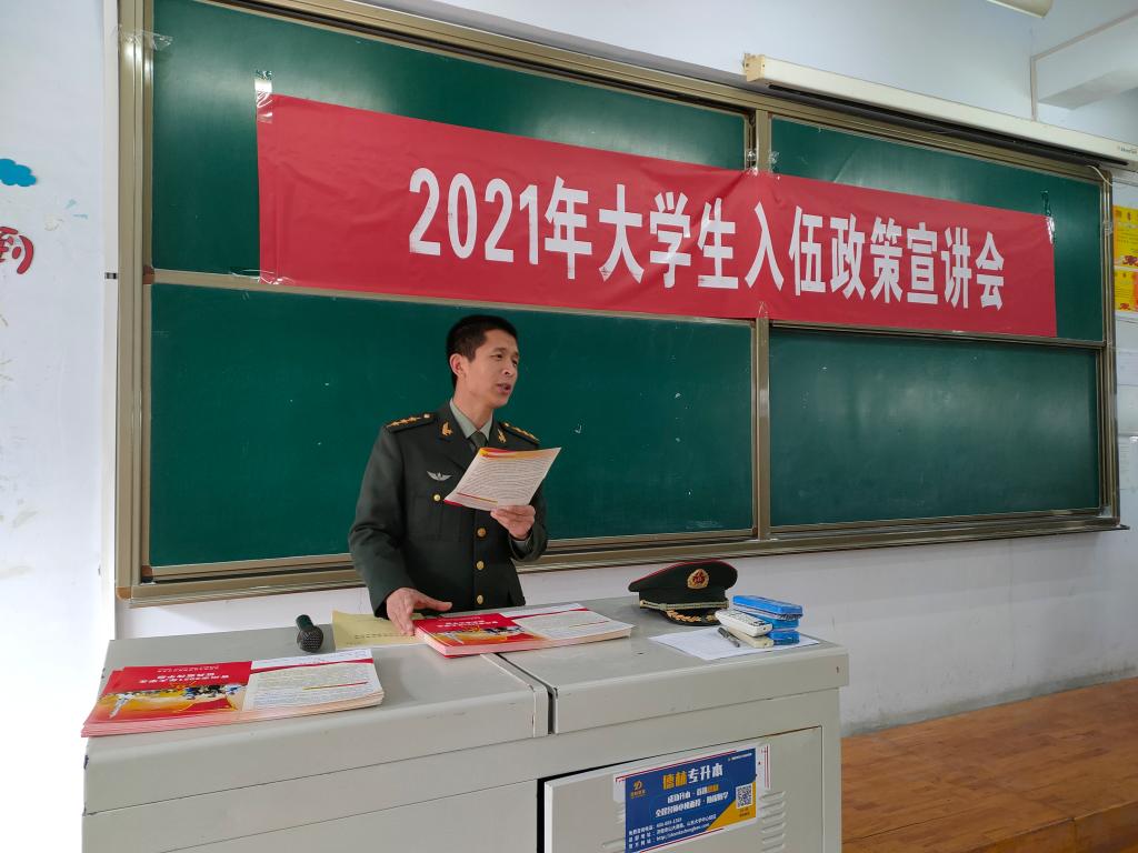 会上,曹永强对征兵流程、经济补助、政策优待、个人成长进步空间等方面进行了深入解读,并详细介绍了入伍、复学、提升学历、就业、公务员招考、部队培养使用等方面的优抚政策。宣讲结束后,曹永强现场针对同学们提出的入伍体检、政审、定兵等问题进行了细致解答。