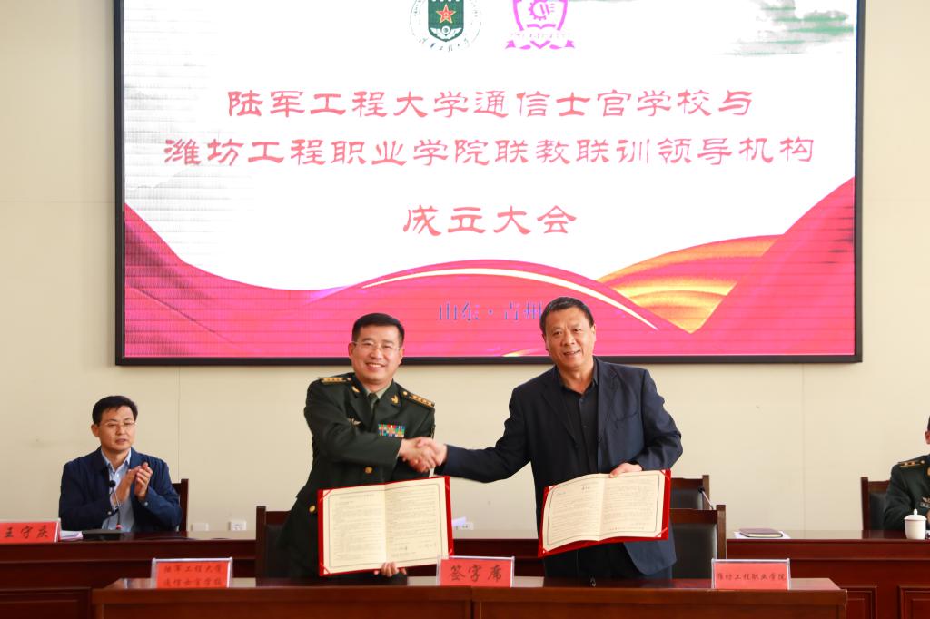 4月8日,我院与陆军工程大学通信士官学校召开首届联席会,签订军地联教联训协议,成立陆军通信技术专业定向培养士官联教联训工作领导机构。副院长韩振华、王守庆,陆军工程大学通信士官学校相关领导参加会议。