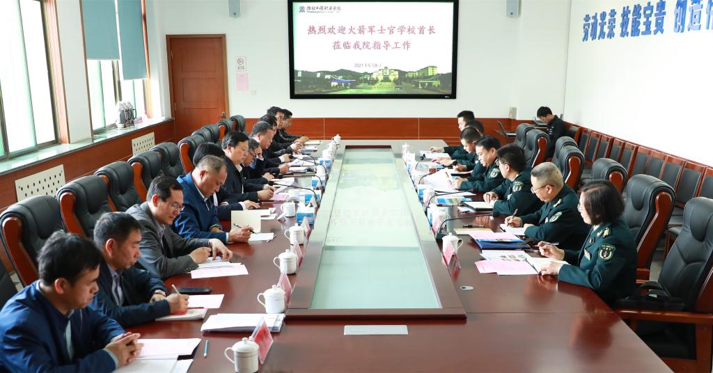 5月8日,火箭军士官学校政委路春福带领机关、军政专家一行9人来院就“体系化提升士官人才培养质量”开展专题调研。我院党委书记肖明胜,院长高立伯,副院长王金明、韩振华出席座谈会,相关职能部门及二级学院负责人参加会议。