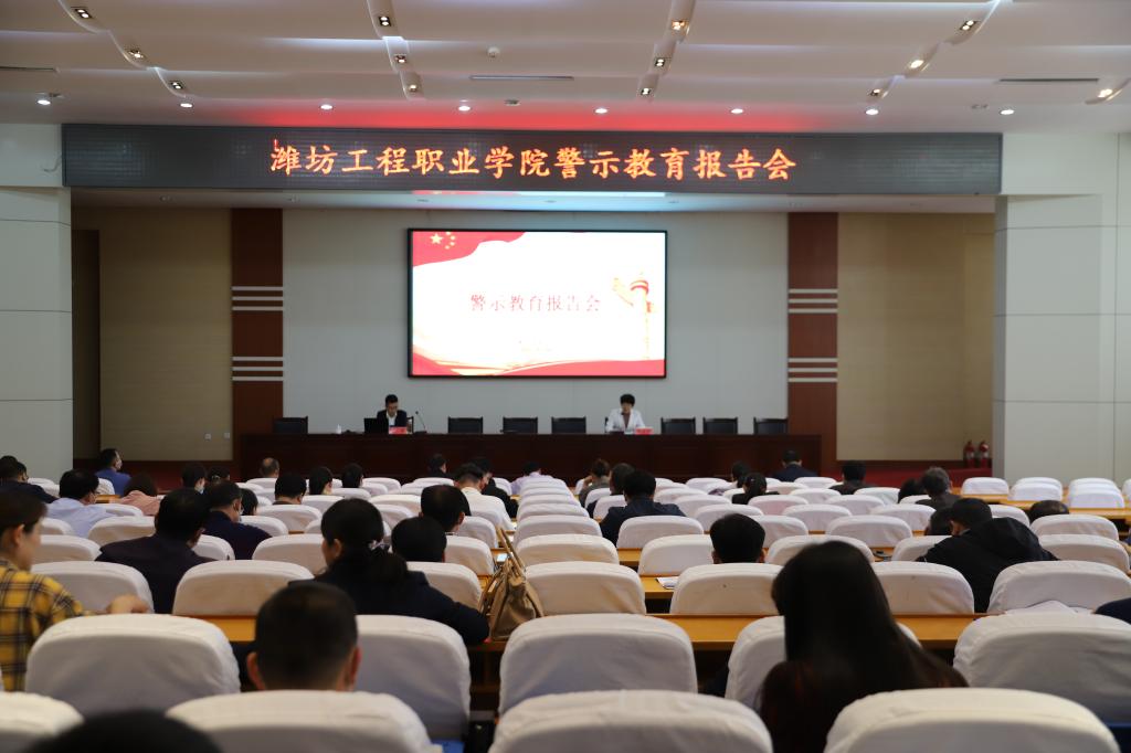 5月20日下午,我院在学术报告厅举办警示教育报告会。青州市纪委监委第七纪检监察室江深主任来院作题为《廉洁守法自律 平安快乐幸福 努力构建和谐教育》的警示教育报告,学院领导出席会议,纪委书记那菊华主持会议并讲话,副科级及以上干部、党支部纪检委员、卧龙校区相关人员参加会议。