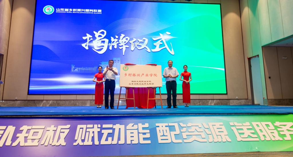 5月28日,面向国家实施乡村振兴战略的重大决策与区域发展需求,潍坊工程职业学院乡村振兴产业学院在山东省乡村振兴联盟成立大会上揭牌成立,山东省农业农村厅党组成员、副厅长褚瑞云与潍坊工程职业学院院长高立伯共同为学院揭牌,乡村振兴规划研究所同期启动。