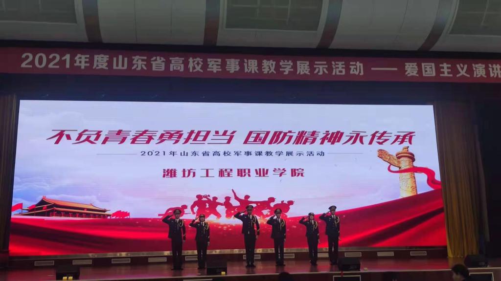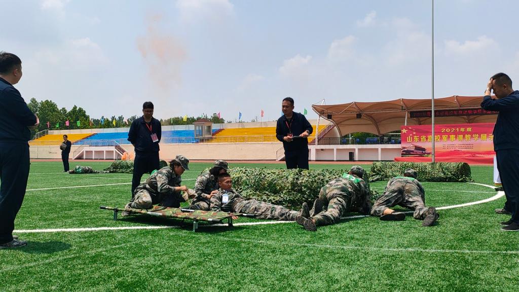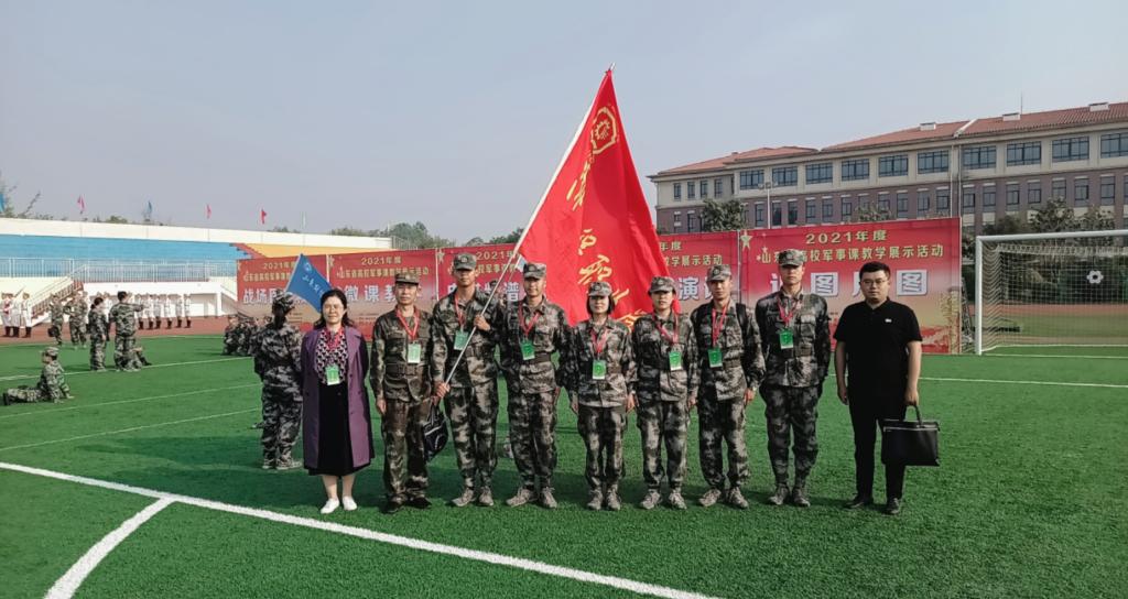 近日,由山东省教育厅、山东省军区战备建设局举办的2021年度“山东省高校军事课教学展示”活动在临沂市青少年实践基地举行。全省共有84所高校、850余名师生参加。我院代表队荣获团体一等奖。其中军事理论微课教学、识图用图、电磁频谱监测分获单项一等奖,爱国主义演讲获单项二等奖,战场救护项目获单项三等奖。