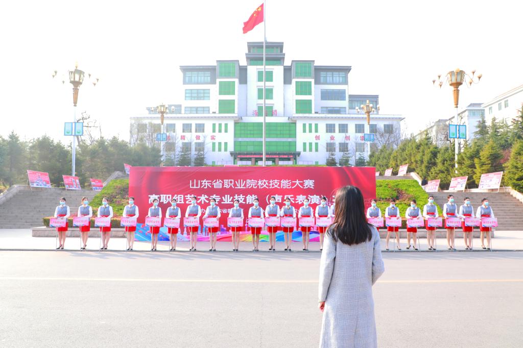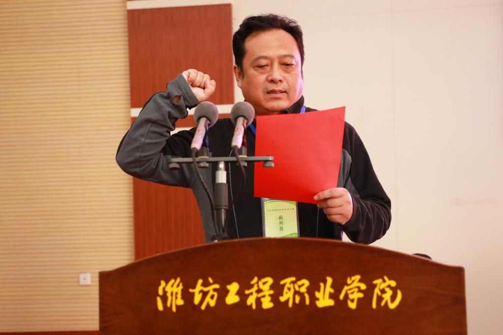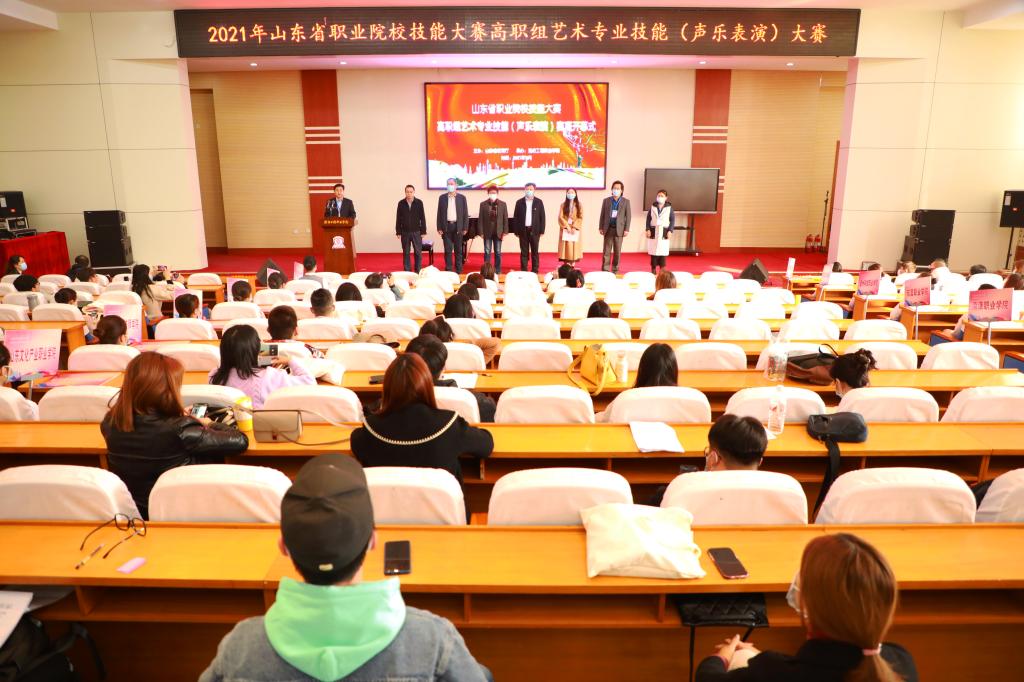 11月19日下午,2021年山东省职业院校技能大赛高职组艺术专业技能(声乐表演)赛项开幕式在潍坊工程职业学院举行,党委书记肖明胜、潍坊市教育局副局长韩光福、大赛执委会办公室主任党莹、大赛裁判长王桂升、专家委员会组长黄永健出席了开幕式,来自全省23所职业院校的领队、指导老师和参赛选手参加了开幕式。副院长王守庆主持。