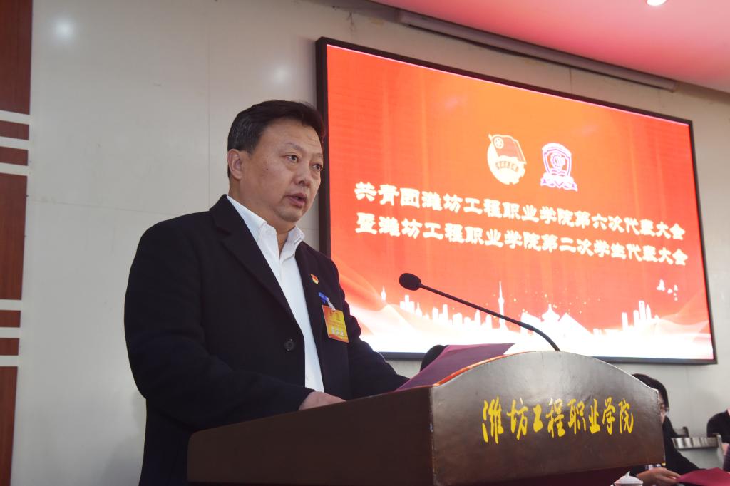 11月24日上午,共青团潍坊工程职业学院第六次代表大会暨潍坊工程职业学院第二次学生代表大会在学院学术报告厅召开。党委书记肖明胜,院领导王金明、那菊华、韩振华、王守庆、冯永光、赵庆松,共青团潍坊市委副书记于涛,共青团青州市委书记赵兴华,各党支部书记出席了会议。全体团员代表、学生代表参加会议。