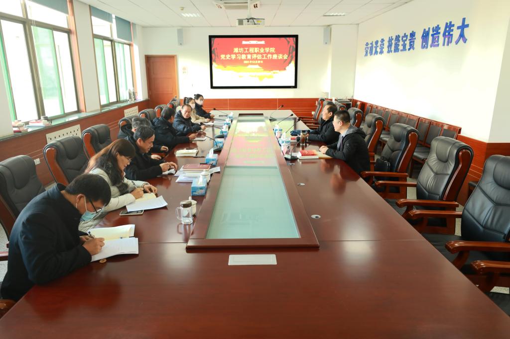 12月29日上午,市综合督导组齐延伟一行来院开展党史学习教育评估工作。党委书记肖明胜,院领导王金明、那菊华、韩振华、冯永光、赵立增、赵庆松出席座谈会,学院各部门、单位相关负责人和师生代表参会。