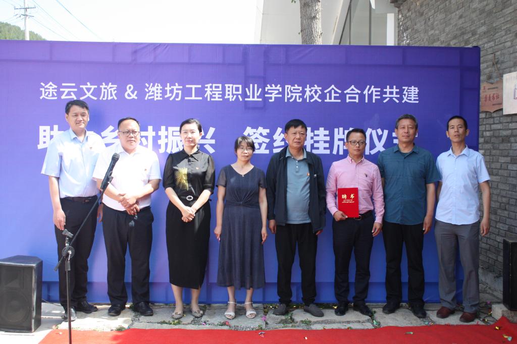 5月26日上午,学院校外实践基地“文化育人实践基地”和“大学生创新创业基地”在青州市庙子镇杨集岸青文创谷揭牌成立。工会、科研产业处、质量管理与绩效考核办公室、经济管理系相关负责人以及青州市庙子镇政府、青州途云文旅投资发展有限公司相关负责人参加揭牌仪式。