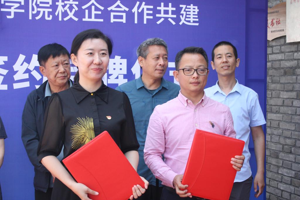 会上,工会负责人表示,多年来学院与青州市政府和企业建立了密切的政校企合作关系,此次政校企三方合作共建“文化育人实践基地”与“大学生创新创业基地”,利用青州乡村文化资源,充分挖掘当地文旅企业优势,创新文化育人模式,共同培养更多具有深厚文化底蕴、良好专业知识、实际操作技能和职业素养的高素质技术技能人才,为青州乡村振兴贡献自己的力量。庙子镇相关负责人表示本次签约揭牌是庙子镇创新发展思路、深化交流合作的有利契机,为推动实施“文化振兴、人才振兴、产业振兴”的乡村振兴战略提供了强大动力。