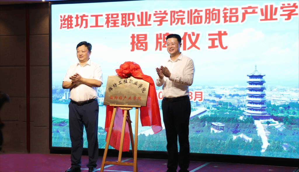 8月26日,学院与临朐县人民政府校地合作共建临朐铝产业学院签约暨揭牌仪式在临朐县举行。党委书记肖明胜与临朐县委副书记、县长陈诚共同为产业学院揭牌,院长高立伯,副院长王金明出席活动。临朐县相关部门单位主要负责同志、部分企业代表、学院相关职能部门负责人参加了活动。仪式由临朐县委常委、宣传部部长、统战部部长、县委教育工委书记刘莹有主持。