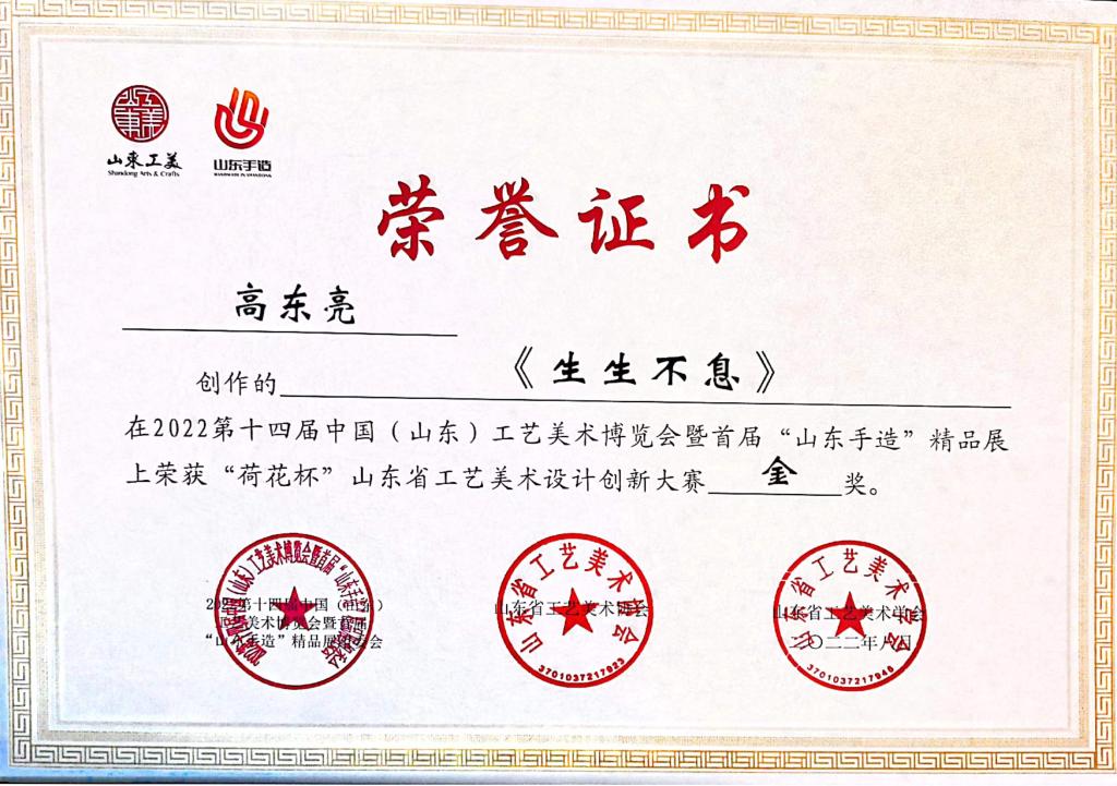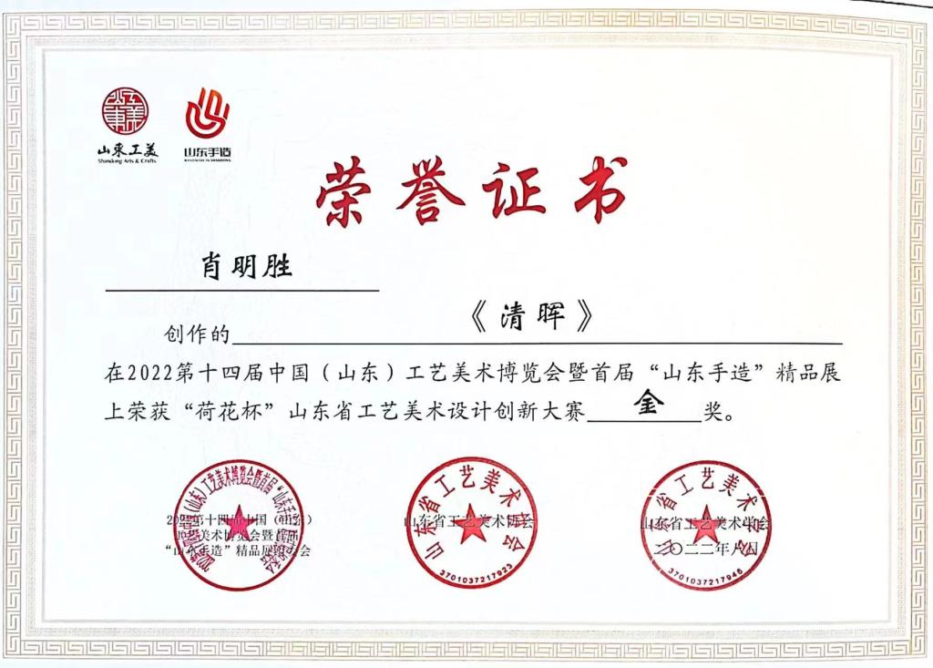 近日,“2022第十四届中国(山东)工艺美术博览会暨首届‘山东手造’精品展”在济南落下帷幕,我院非遗产业学院斫琴坊、篆刻坊、制砚坊、葫芦丝坊、皮雕坊和砸铜坊6个非遗工坊手造作品斩获“2021‘山东工美’年度精品”3项、“‘荷花杯’山东省工艺美术设计创新大赛金奖”3项、“‘荷花杯’山东省工艺美术设计创新大赛银奖”9项,共计15项。