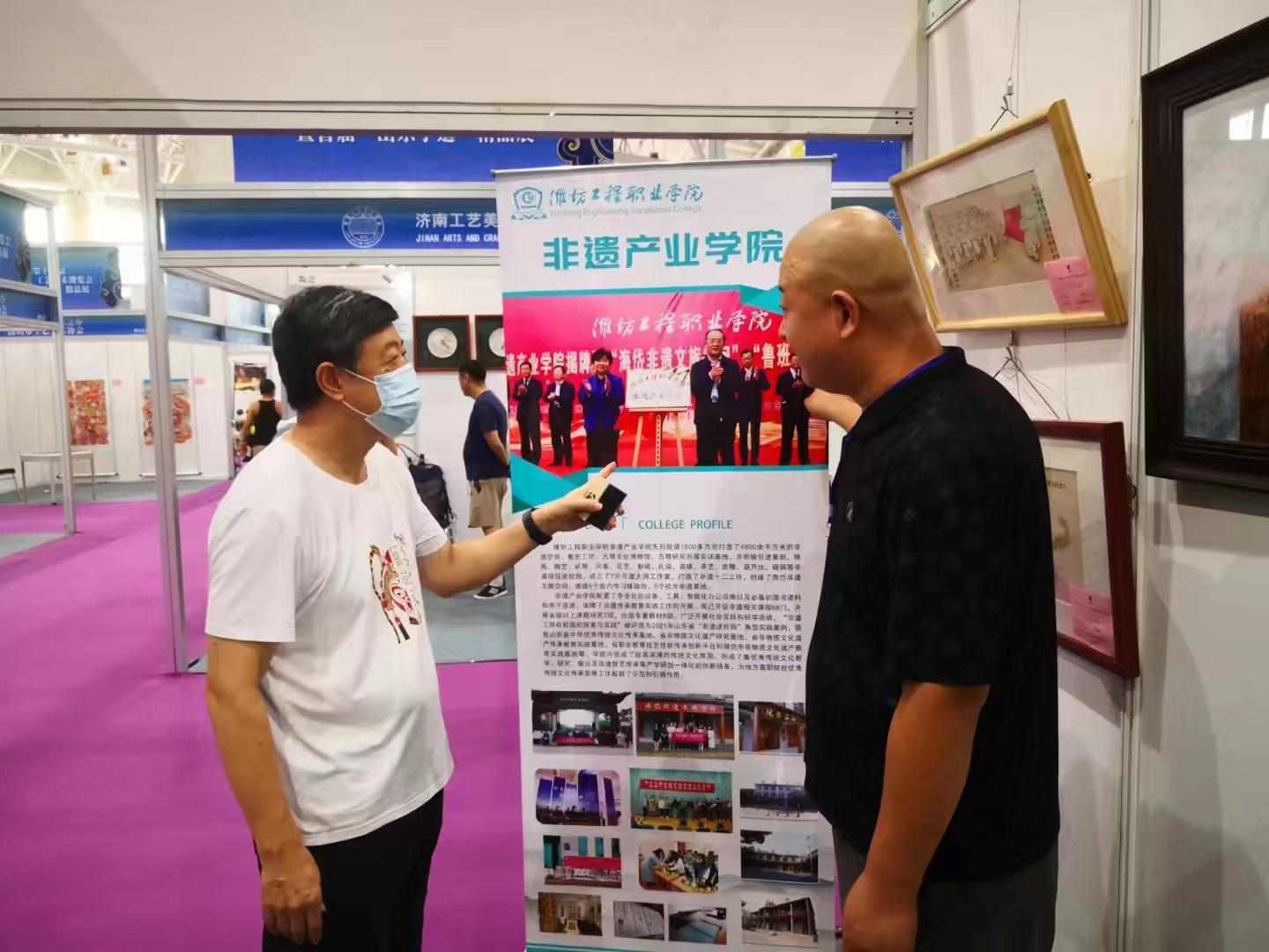 本届中国(山东)工艺美术博览会特别突出“山东手造”地域特色和工艺美术代表性门类,旨在促进“山东手造”品牌的建设,展示出优秀传统文化的创造性转化与创新性发展。近年,学院立足地方文化特色,探索非遗多元发展机制,不断促进非遗传承与现代大学教育体系深度融合,此次展览展示了学院多样化的非遗手造作品,也展现了融通非遗文化传承与职业教育的学院特色。