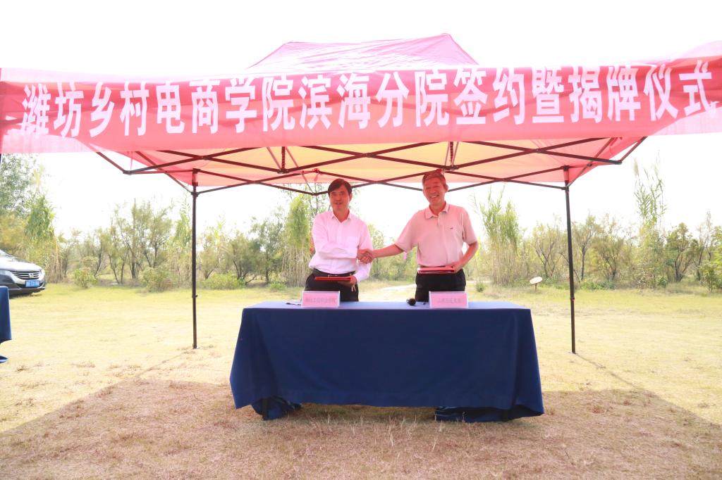 9月28日上午,潍坊乡村电商学院滨海分院签约暨揭牌仪式在潍坊滨海经济技术开发区举行。院长高立伯与滨海经济技术开发区党工委委员、管委会副主任孙鹏为分院揭牌。副院长王金明与山东乐道农业科技有限公司董事长杨湘泉签署合作协议。滨海区文体旅游产业发展中心、经济管理系相关负责人与企业代表参加仪式。揭牌仪式由滨海区旅游度假区(文体旅产业发展中心)党委书记冯月玲主持。