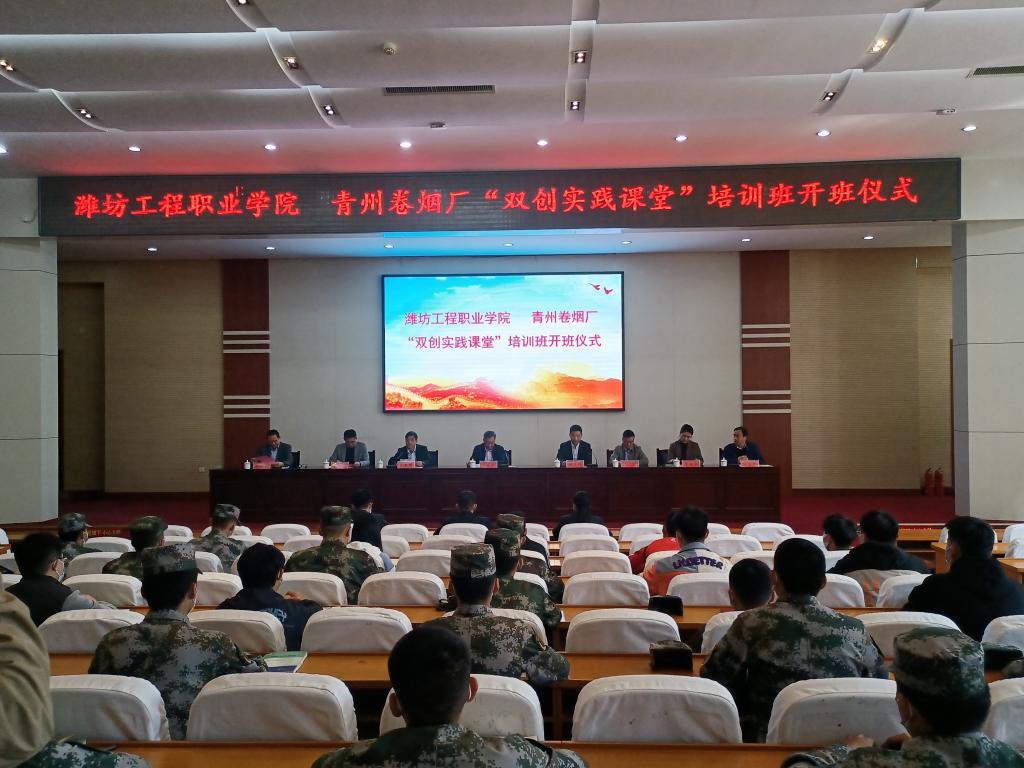 10月12日,学院与青州卷烟厂“双创实践课堂”开班仪式举行。院长高立伯、副院长王金明,青州卷烟厂厂长张志伟、副厂长山强出席活动,机电工程学院、招生就业处相关负责人以及青州卷烟厂人力资源处、团委等相关部门负责人参加活动。