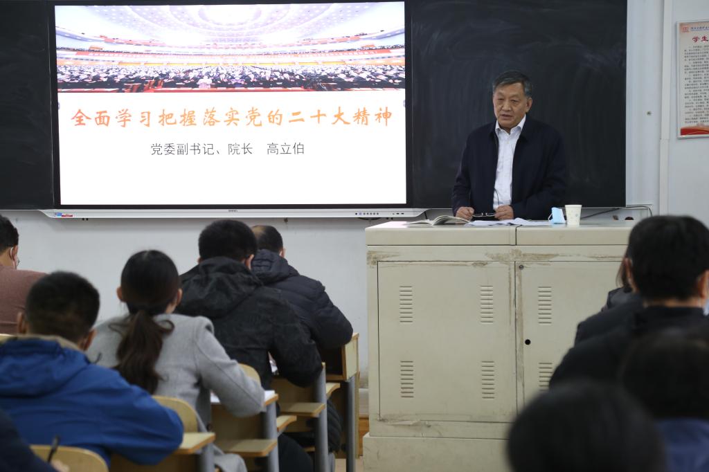 为深入学习宣传贯彻党的二十大精神,11月21日下午,院长高立伯深入建筑工程学院与农林科技学院宣讲党的二十大精神。