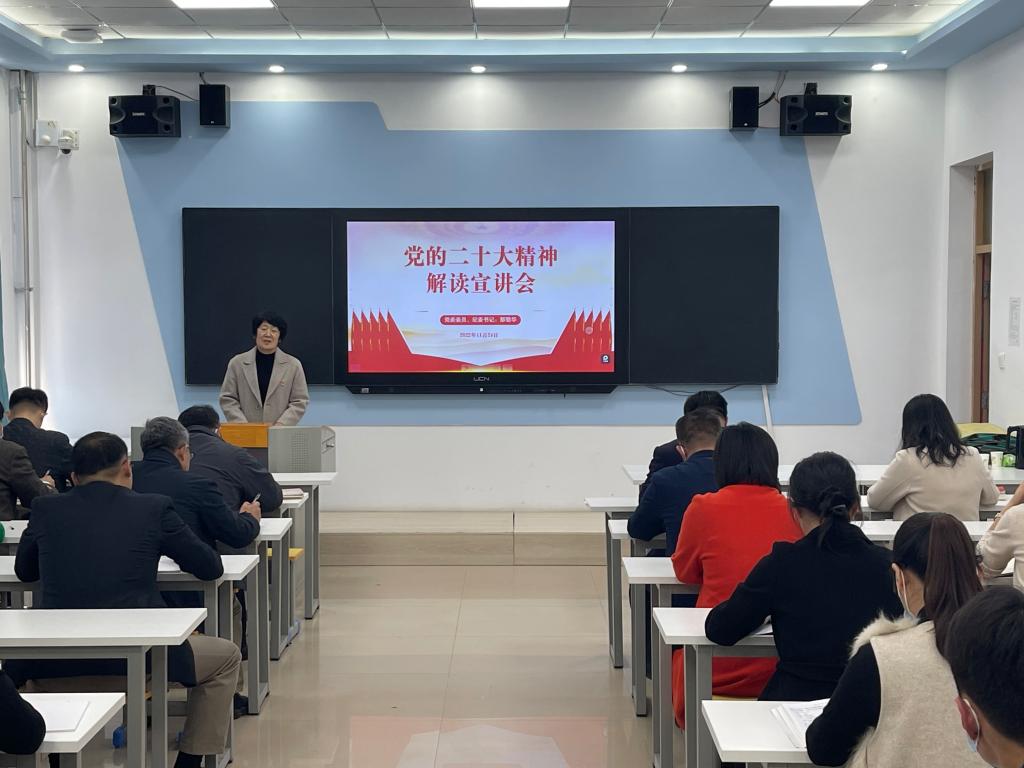 11月24日,纪委书记那菊华到商学院、凤凰艺术学院为全体教师宣讲党的二十大精神。