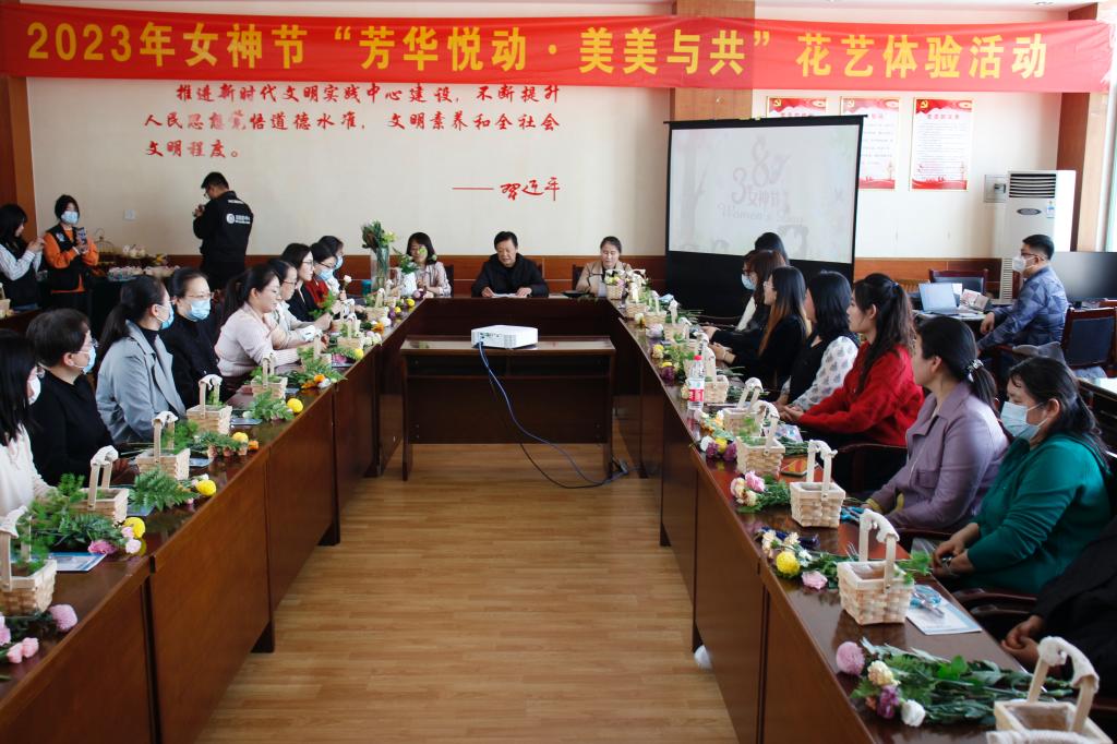 阳春三月,人面桃花相映红;三八佳节,巾帼奉献显风流。3月7日下午,我校在海岱阁619会议室组织开展“芳华悦动·美美与共”插花艺术体验活动,活动邀请了花艺老师现场授课,女教职工代表参加了本次活动,副院长王金明出席活动,并代表学校党委送上节日祝福,并传达了潍坊市各界妇女纪念“三八”国际妇女节113周年暨加快建设新时代社会主义现代化强市巾帼建功推进会议精神。