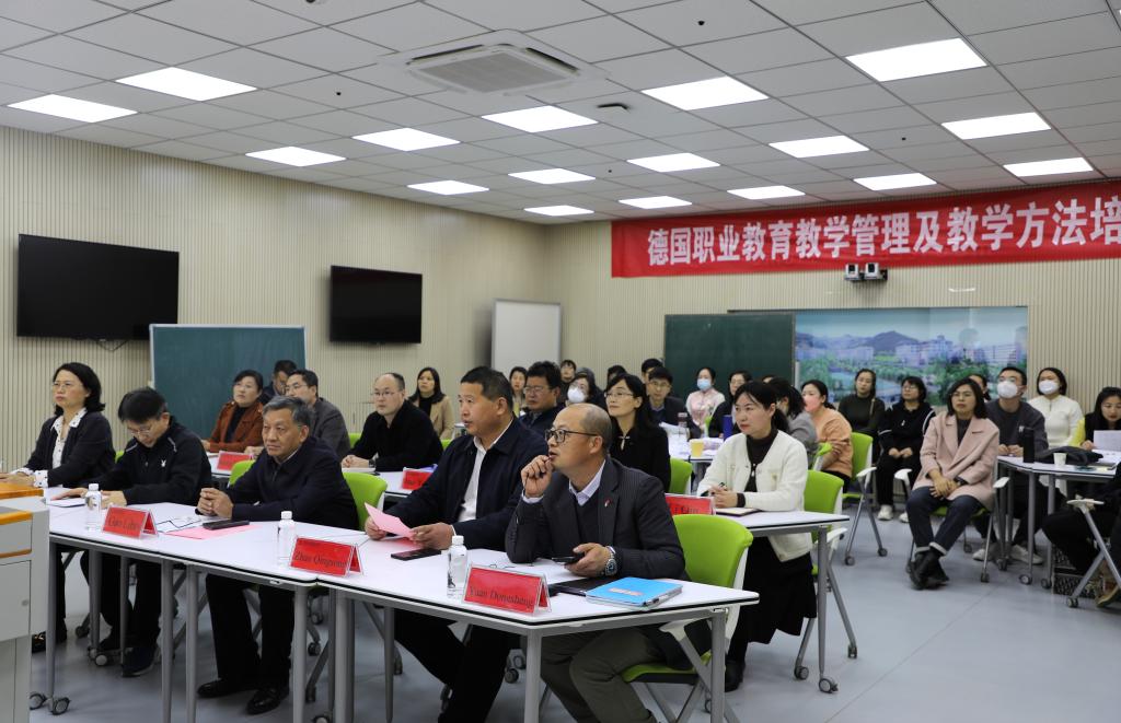 此次培训班由我院联合德国汉斯·赛德尔基金会、德国黑森州教师技能培训中心和山东巴伐利亚职教师资培训中心共同举办。自2023年3月13日至2023年5月13日集中授课3个月,分3个阶段,采取德方专家线上授课、学员线下集中参与的方式进行。学院选派各二级学院骨干教师及相关教学管理负责人参加培训,培训内容主要包括德国双元制职教体系和培训标准、以职业行动能力培养为导向的教学管理、组织和实施以及教学项目设计的展示、汇报和评估等。