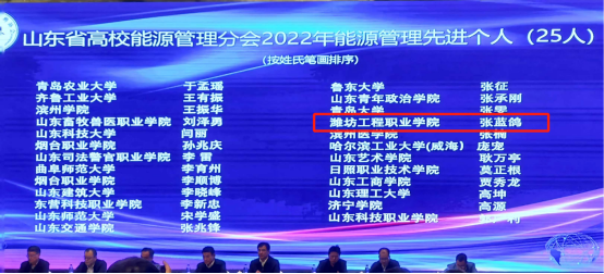 近日,山东省学校后勤协会公布2022年度能源管理先进单位、先进个人,我校获评“能源管理先进院校”,张蓝鸽老师获评“能源管理先进个人”。