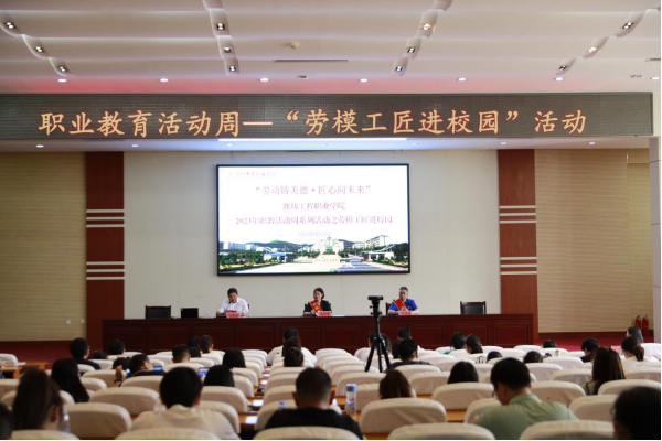 5月18日下午,我校“劳模工匠进校园”活动在报告厅举行,邀请全国劳动模范、潍坊市儿童福利院副院长杨守伟,全国五一劳动奖章获得者、潍柴首席技师汤海威为师生作专题报告。学校领导赵庆松出席并主持活动,潍坊职工服务中心技术创新服务科徐庭飞、赵滕飞,教务处负责同志以及各二级学院(部)师生代表参加活动。