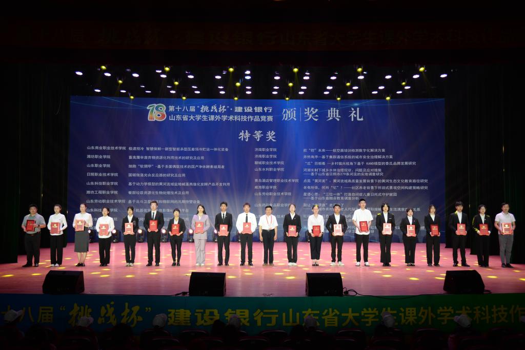 近日,由共青团山东省委等联合会主办的第十八届“挑战杯”·建设银行山东省大学生课外学术科技作品竞赛落下帷幕,我校获特等奖1项、一等奖3项、二等奖3项、三等奖5项,同时获优秀组织奖。