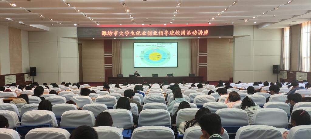 本次活动分为观看潍坊市情市貌宣传片、就业创业指导讲座、互动答疑三个环节。讲座由齐鲁工业大学(山东省科学院)就业指导中心主任、全国高校就业指导专家、山东省就业创业工作先进个人、教育部“宏志助航”计划就业创业指导老师、国家二级创业咨询师韩晓曼主任担任主讲。她主要讲解了职业定位、简历制作、创业启动三个方面的内容。互动答疑环节,她对学生现场提出的实际就业问题进行了点对点重点解析,现场气氛积极热烈,学生们纷纷表示受益匪浅。