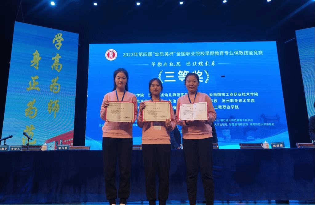 近日,教师教育学院2021级婴幼儿托育服务与管理专业学生白俊榕、王小雅、王璇在2023中国—东盟教育交流周职业技能大赛婴幼儿保教技能大赛决赛中荣获二等奖,2021级早期教育专业学生石嘉仪、武启月、刘舒君荣获第四届“幼乐美杯”全国职业院校早期教育专业保教技能竞赛三等奖。下步,教师教育学院将以此次比赛为契机,坚持“以赛促教、以赛促学、以赛促研、以赛促建”理念,加强学生专业技能培养,促进人才培养质量不断提升。