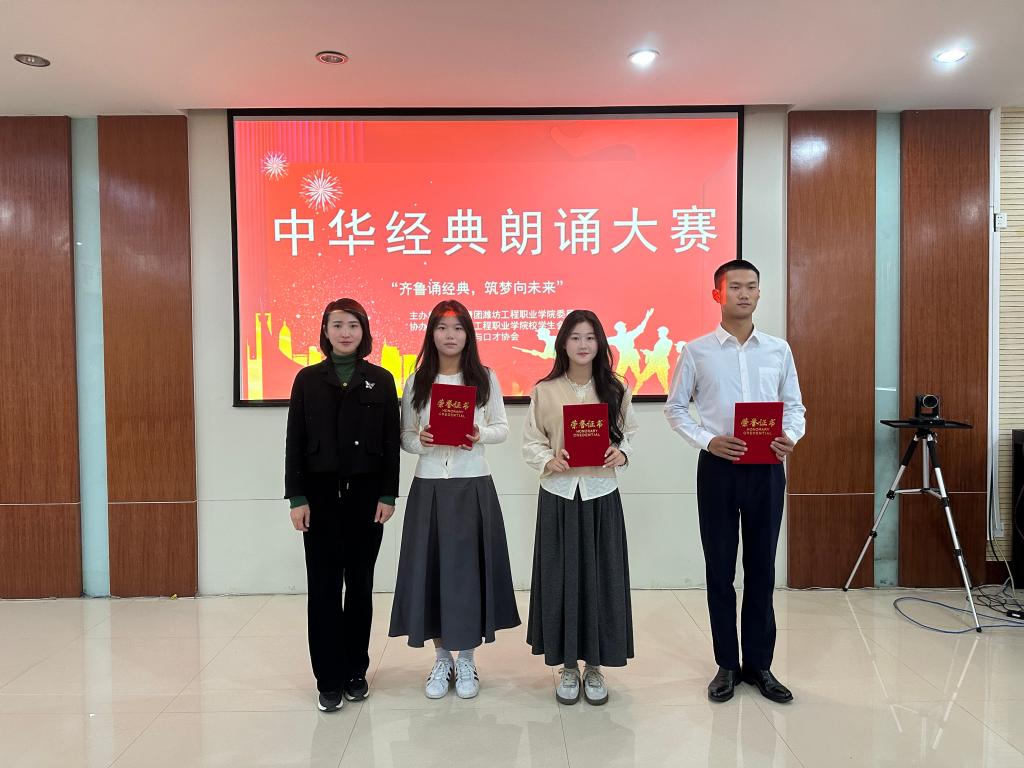 11月8日下午,由团委学生处主办的“齐鲁诵经典·筑梦向未来”中华经典朗诵决赛在海岱阁606举行。比赛现场气氛浓烈,选手们在舞台上声情并茂、自信从容,以诗歌配乐、情境诵读、诗词表演等多种形式“诵读中国”,他们或热情洋溢,或铿锵有力,或婉转悠扬,用富有节奏感和韵律感的诵读,诠释了经典的风韵,展现了当代青年的蓬勃朝气。同学们在活动中感受到了中华经典文化的魅力,陶冶了情操,激发了爱国热情。