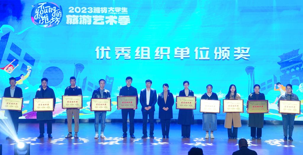 11月18日,“不一Young的潍坊”2023大学生旅游艺术季颁奖典礼暨“更好潍坊 激享冬趣”冬游季启动仪式落下帷幕,我院12名学生获奖,学院荣获“优秀组织奖”并受邀参加演出。