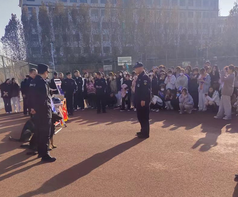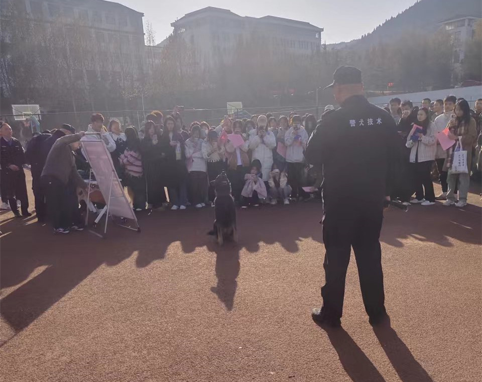 为进一步强化平安校园建设,12月5日,团委学生处、安全保卫处联合青州市刑警反恐中队在学院操场组织开展了反恐宣传进校园活动。活动中,刑警反恐中队队员向师生们宣讲了反恐法律法规,讲解了恐怖活动的主要类型、社会危害及应对防范措施等,并在活动现场发放了反恐知识手册,并进行了警犬基础科目的展示,警犬在训导员的引导下展现了出色的训练技能和成果,赢得了现场师生的热烈掌声。