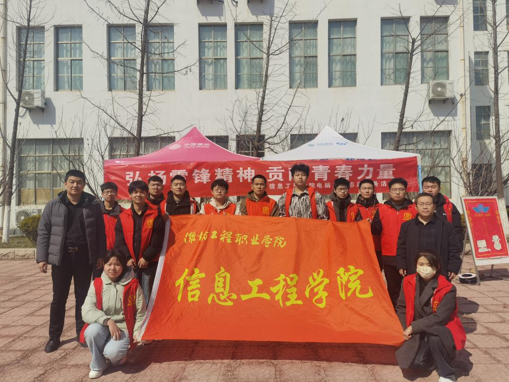 3月8日,信息工程学院团总支组织30余名志愿者,在厚德楼南侧广场举办“弘扬雷锋精神,贡献青春力量”电脑义诊活动。