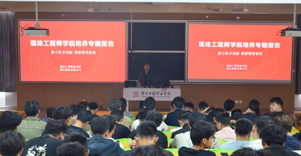 为扎实推进山东省首批现场工程师专项培养计划项目,培养精操作、懂工艺、会管理、善协作、能创新的复合型紧缺工程技术应用人才,5月11日,机电工程学院邀请歌尔股份有限公司校企合作部副部长高萍,在培德楼301为现场工程师班学生作“聚力技术创新 深耕精密制造”专题报告。