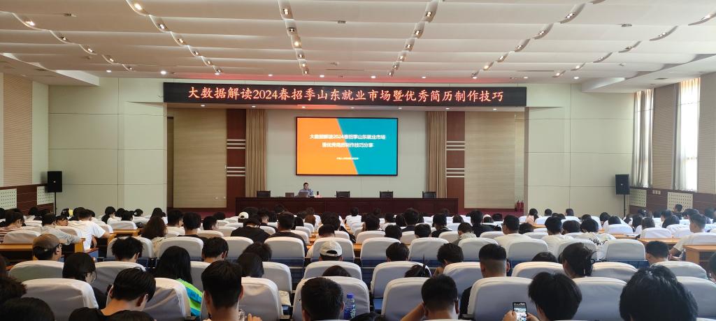 5月13日,招生就业处在学术报告厅举办大学生就业指导讲座。讲座由齐鲁人才研究院副院长李召华担任主讲,近400名学生参加报告会。