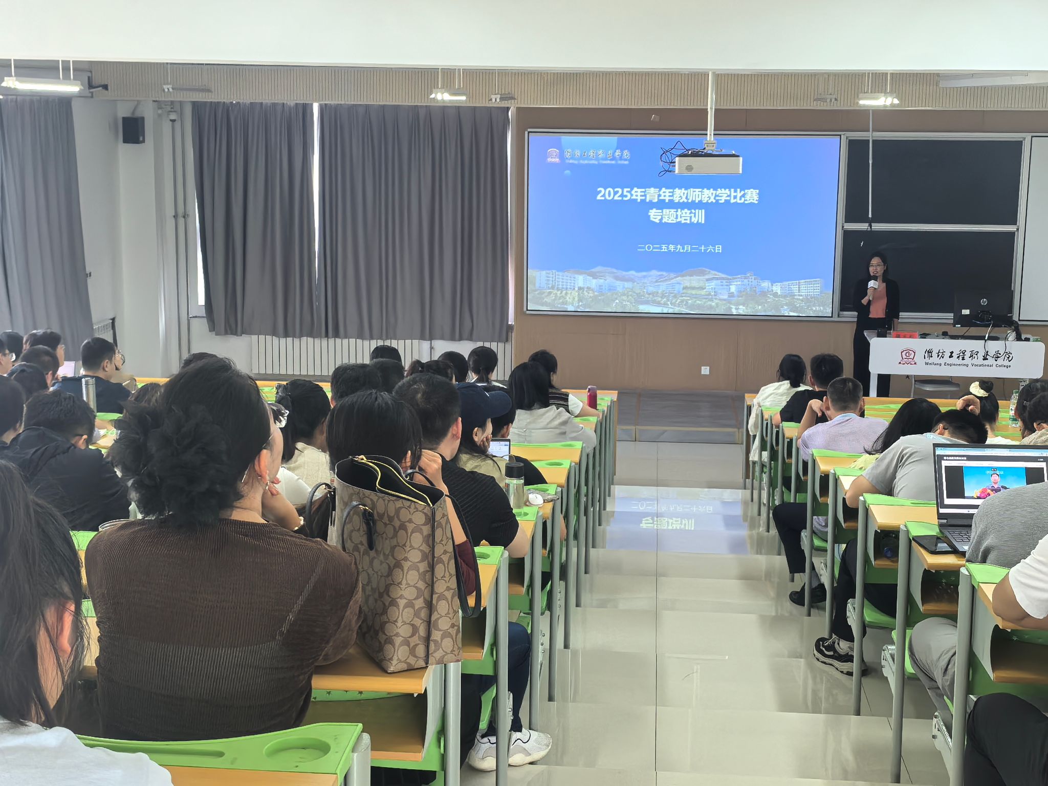 9月26日,2025年青年教师教学比赛专题培训在培德楼301教室举行。全国高校青年教师教学比赛工科组一等奖获得者、机电工程学院院长韩志引作专题报告和经验交流,各二级学院(部)相关负责人、教学科科长、教研室主任、部分青年教师以及拟参赛教师参加培训。