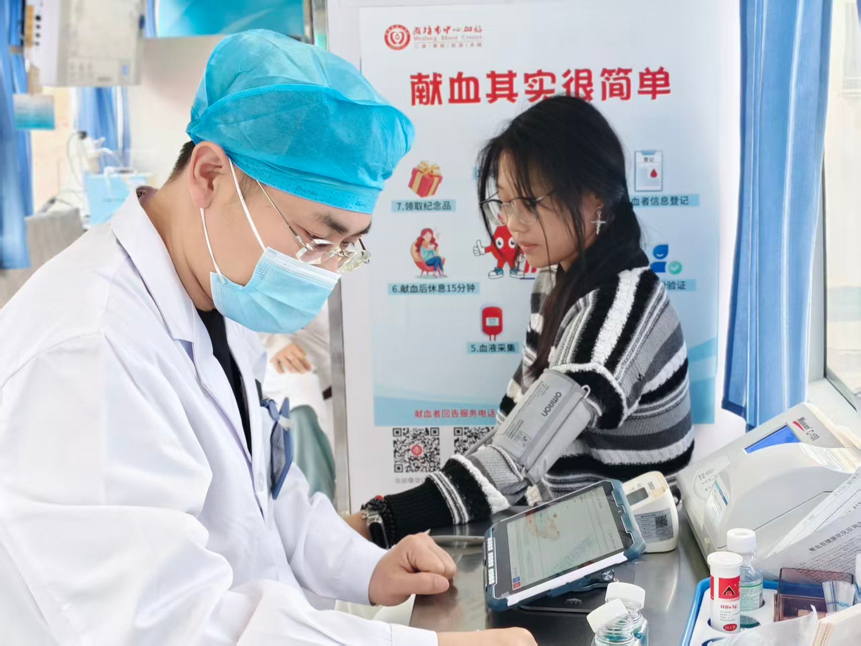 活动现场暖意融融,参与献血的师生在医护人员指引下,严格按照流程,有序进行信息登记、血压测量、血液初筛等工作,随后依次进入抽血环节,顺利完成献血。整个现场秩序井然,师生以实际行动传递爱心,为保障临床用血贡献了自己的力量。