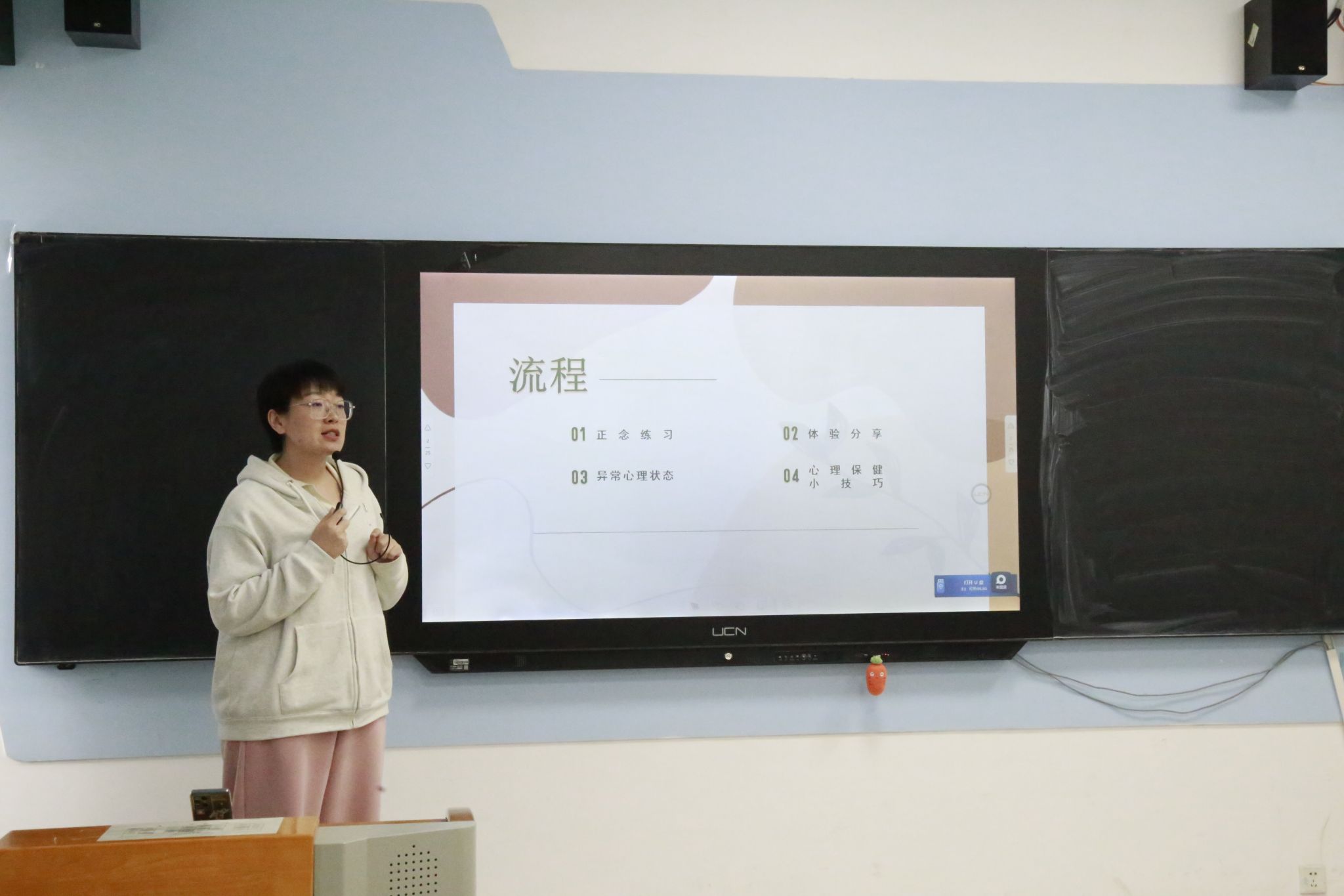 活动中,学院心理健康工作站负责同志就重视学生自身心理健康维护和日常自我关怀提出要求,工作站成员、辅导员老师进行了辅导讲解,学生体验了缓解情绪困扰的正念练习,进一步了解了高发的心理障碍特征以及日常心理保健技巧及面对突发心理危机时的应对手段。