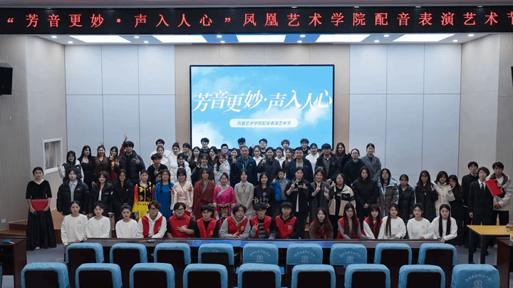 为创新美育实践形式、丰富校园文化生活,12月3日,凤凰艺术学院在玲珑山校区报告厅举办了“芳音更妙·声入人心”首届大学生配音表演艺术节,200余名师生观看演出。