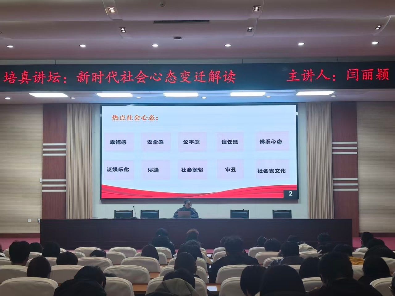 12月4日,图书信息中心在学术报告厅举办第九期“培真讲坛”文化讲座,讲座以《新时代社会心态变迁解读》为主题,邀请马克思主义学院闫丽颖老师担任主讲。