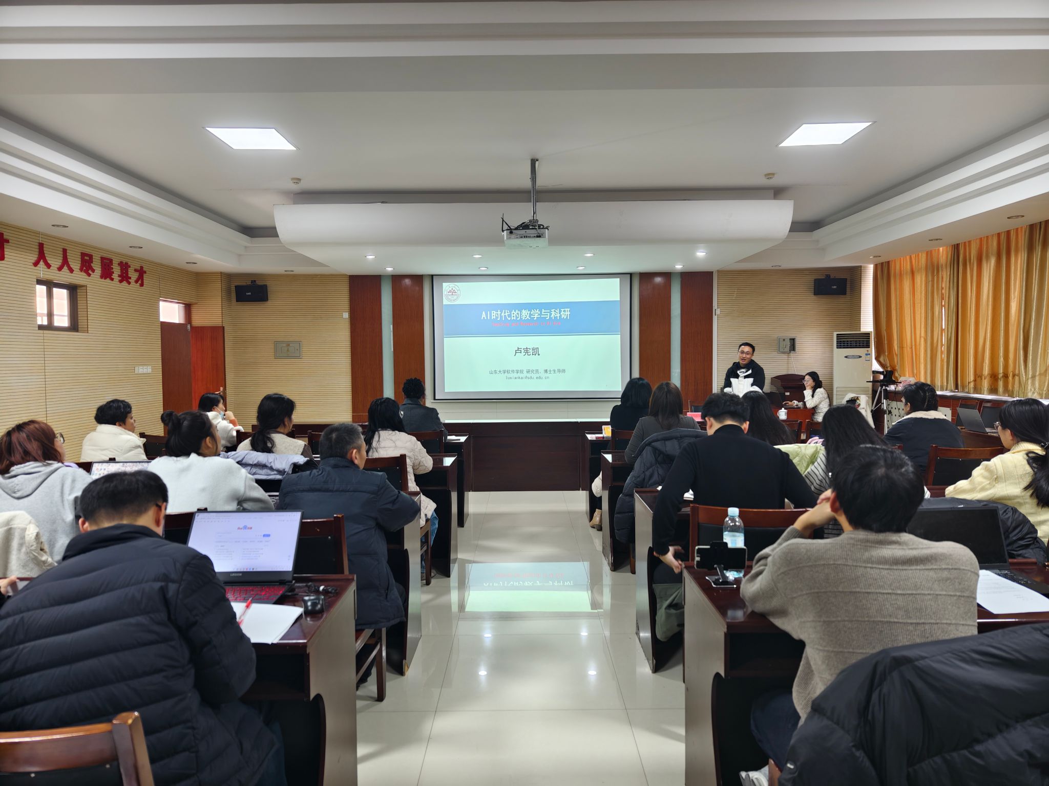 卢宪凯教授以“AI时代的教学与科研”为题,结合人工智能技术的发展背景与时代趋势,就“人工智能技术如何深度赋能教育教学改革与科研创新实践”分享了深刻见解与前瞻思考。讲座内容紧扣当前教育数字化、智能化转型的实际需求,为与会老师们提供了宝贵的启发。在交流环节,老师们就自身在教学与科研实践中遇到的AI技术应用相关问题踊跃提问,卢教授逐一进行了深入浅出的解答与互动。