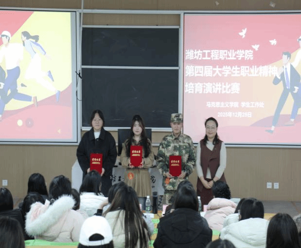 为大力弘扬劳模精神、劳动精神、工匠精神,培育广大学子诚实劳动、勤勉工作、锐意创新、敢为人先的职业道德,践行“我劳动、我奉献、我光荣”的职业教育理念,12月25日,马克思主义学院、学生工作处联合举办“爱岗敬业 崇尚劳动·创造出彩人生”第四届大学生职业精神培育演讲比赛。