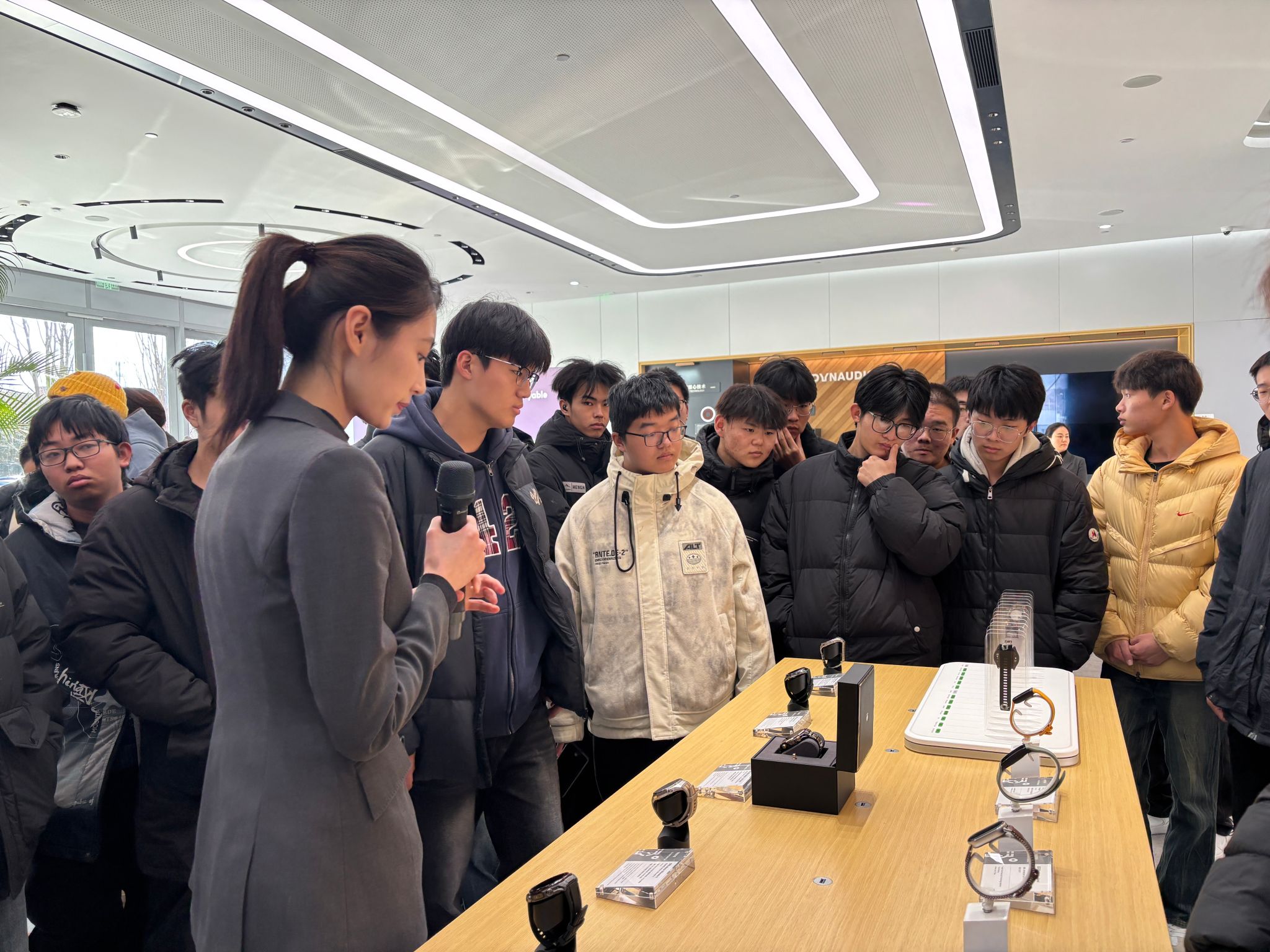 活动中,学生走进歌尔光电园产品展示区,近距离观摩智能穿戴、声学设备等前沿电子产品,企业讲解员结合产品研发、生产流程,生动讲解了机电技术在消费电子领域的实际应用。在歌尔工学院教学与实训区域,学生依次参观了模具加工、精密机械实训车间,近距离接触各类精密模具与加工设备,企业技术人员针对设备原理、工艺要点及岗位技能要求进行细致讲解,解答了学生关于专业实操、职业发展等诸多疑问。专题分享环节,企业讲师围绕行业发展趋势、企业人才需求及校企合作项目展开讲解,通过真实案例剖析相关专业的就业前景与发展方向,让学生对自身专业学习与职业规划有了更清晰的认知。