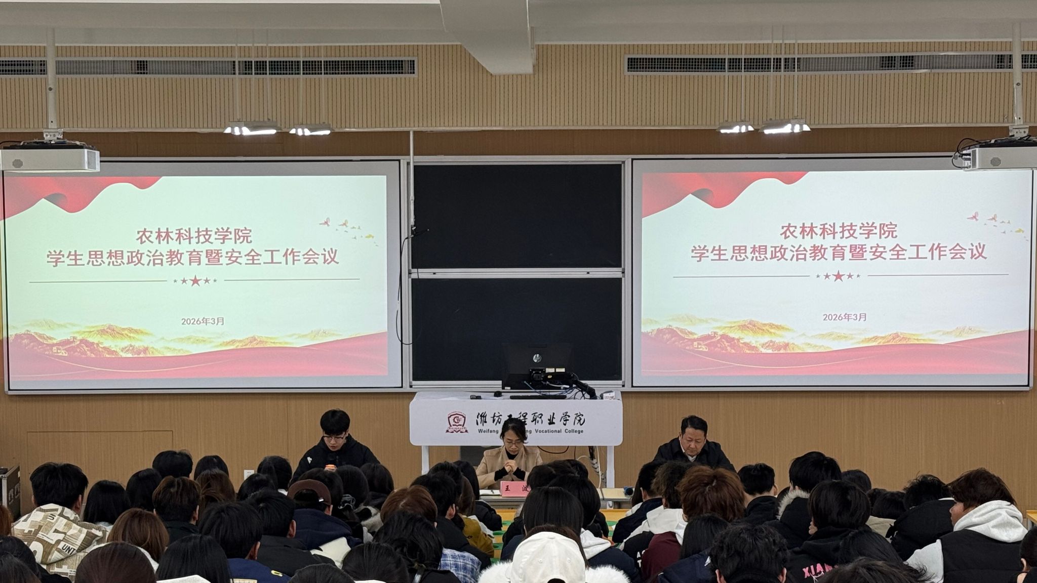 会上,表扬了过去一年表现突出、履职尽责的优秀学生干部,激励全体学生以先进为榜样,在成长路上锤炼品格、增长才干,共同营造积极向上、团结奋进的校园氛围;3名优秀学生干部代表作交流发言,分享了在学生工作中的收获与感悟,表达了牢记责任使命、服务同学成长、助力学院发展的信心决心;开展了反诈骗安全教育宣讲,结合真实案例深入剖析诈骗手段,提醒学生筑牢思想防线,守护自身财产安全。会上,对当前学生工作和教学工作进行部署安排,从确立目标、强化担当、勇于创新等方面提出要求,激励学生坚定理想信念,锤炼过硬本领,增强安全防范意识和自我保护能力,带头遵守各项规章制度,主动参与校园建设,努力成长为有理想、敢担当、能吃苦、肯奋斗的新时代农林学子。