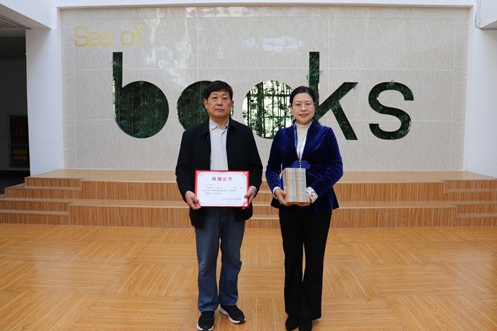 4月3日,《青州文学》主编张雯先生代表济南大学基础教育中心党委书记、主任孙翔玲先生,向学院捐赠2套《孙瑞文集》。图书信息中心相关负责同志代表学院接受捐赠,并为捐赠代表颁发捐赠证书。