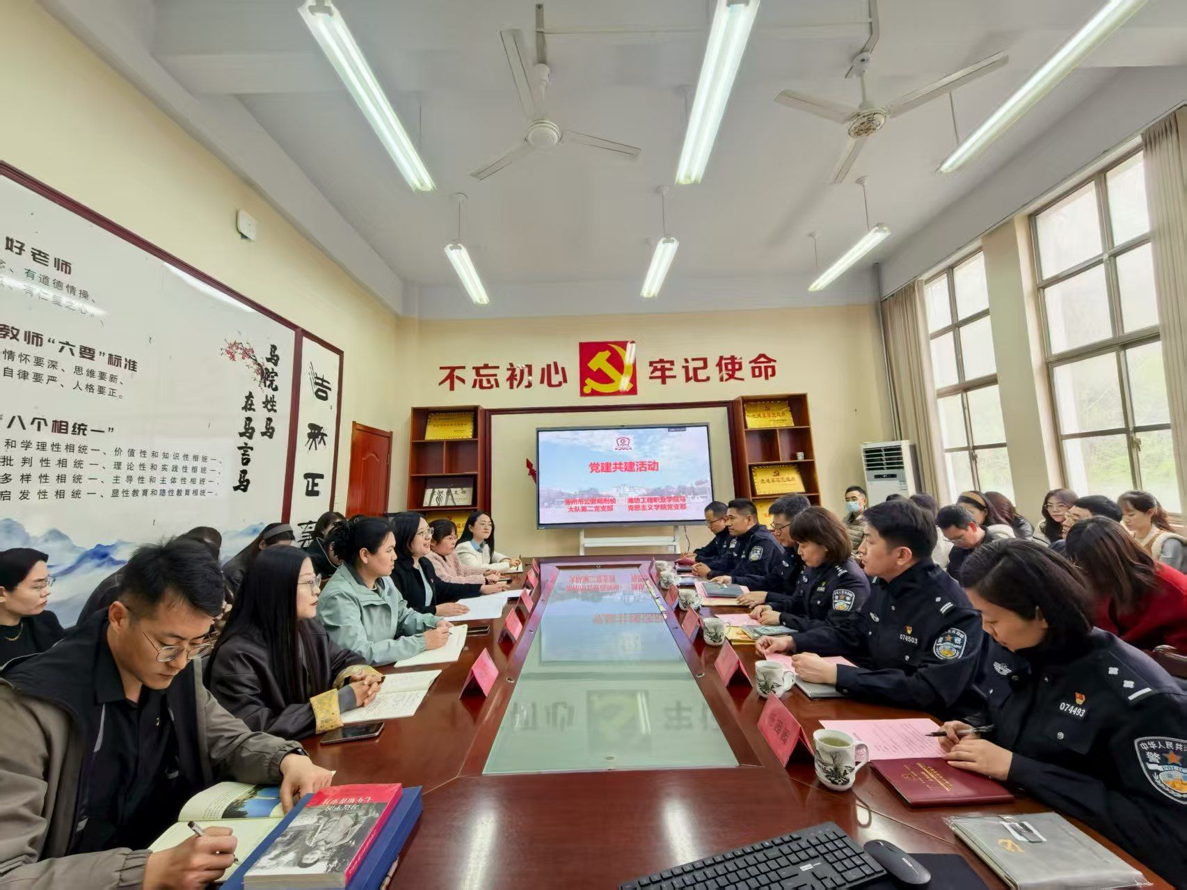 为推动党建工作与思政育人、法治实践深度融合,4月9日,马克思主义学院党支部特邀青州市公安局刑侦大队副队长、第二党支部党支部书记、全国公安英雄二级模范、“中国好人”张晓华做客第三期言马讲坛,并同步开展校警党建共建活动。