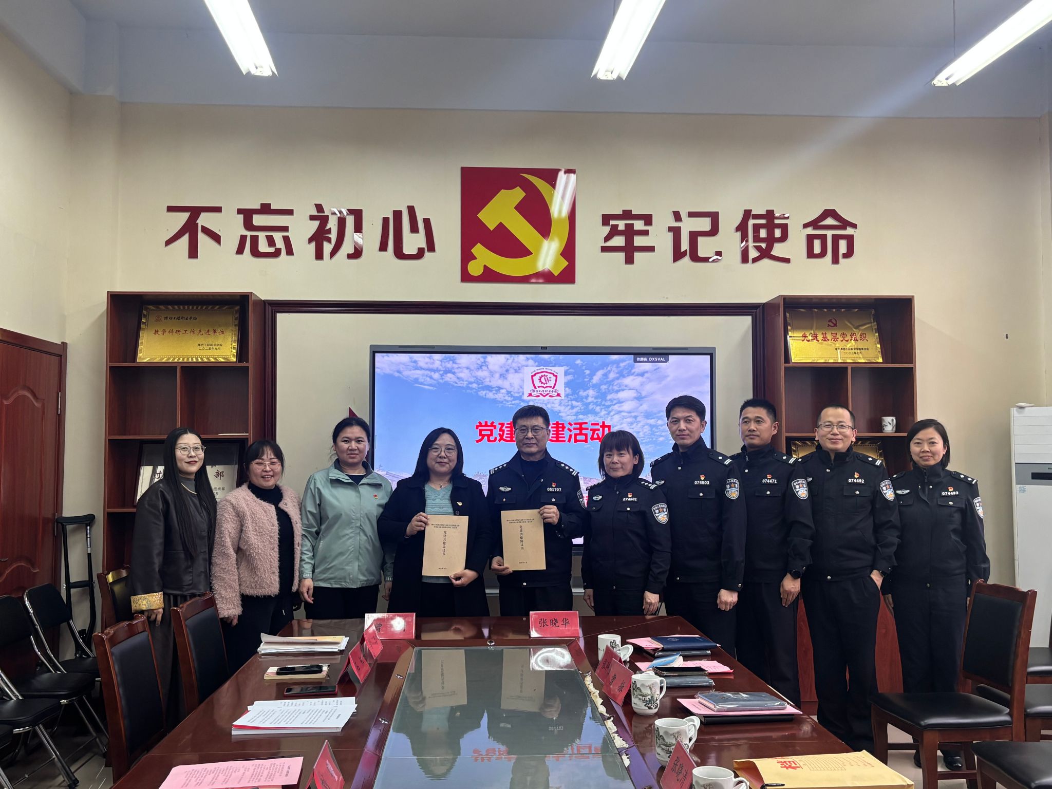 张晓华以《藏蓝岁月里的坚守与担当》为题,结合自身从警经历,讲述了从“法医小白”从知识恐慌、技能恐慌,到勤学苦练成长为业务骨干、公安英模的奋斗历程,用一线办案故事生动诠释了新时代公安干警的初心与使命。互动交流环节中,师生围绕反诈防骗等热点问题踊跃提问,警官们结合实战经验细致解答,并进一步普及了反诈知识与防范技巧,现场氛围热烈。校警党建共建活动中,双方分别介绍了支部建设情况,就学院理论优势与刑侦大队实践资源相结合,以党建联建促进思政育人与法治实践融合,共同培育法治“明白人”队伍达成共识,并签署党建共建协议。