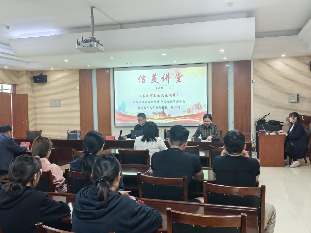 本次“信美讲堂”专题报告,不仅为师生带来了一场高水平的文化盛宴,更是一堂生动的审美教育课与文化自信课。下步,马克思主义学院将继续以“信美讲堂”为平台,举办更多高品质的文化活动,进一步引导师生深刻感悟中华优秀传统文化的博大精深,提升艺术鉴赏能力。