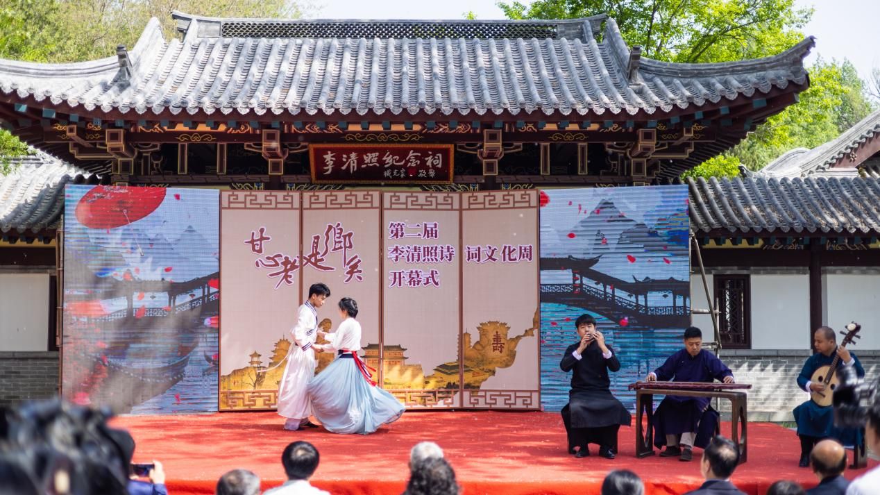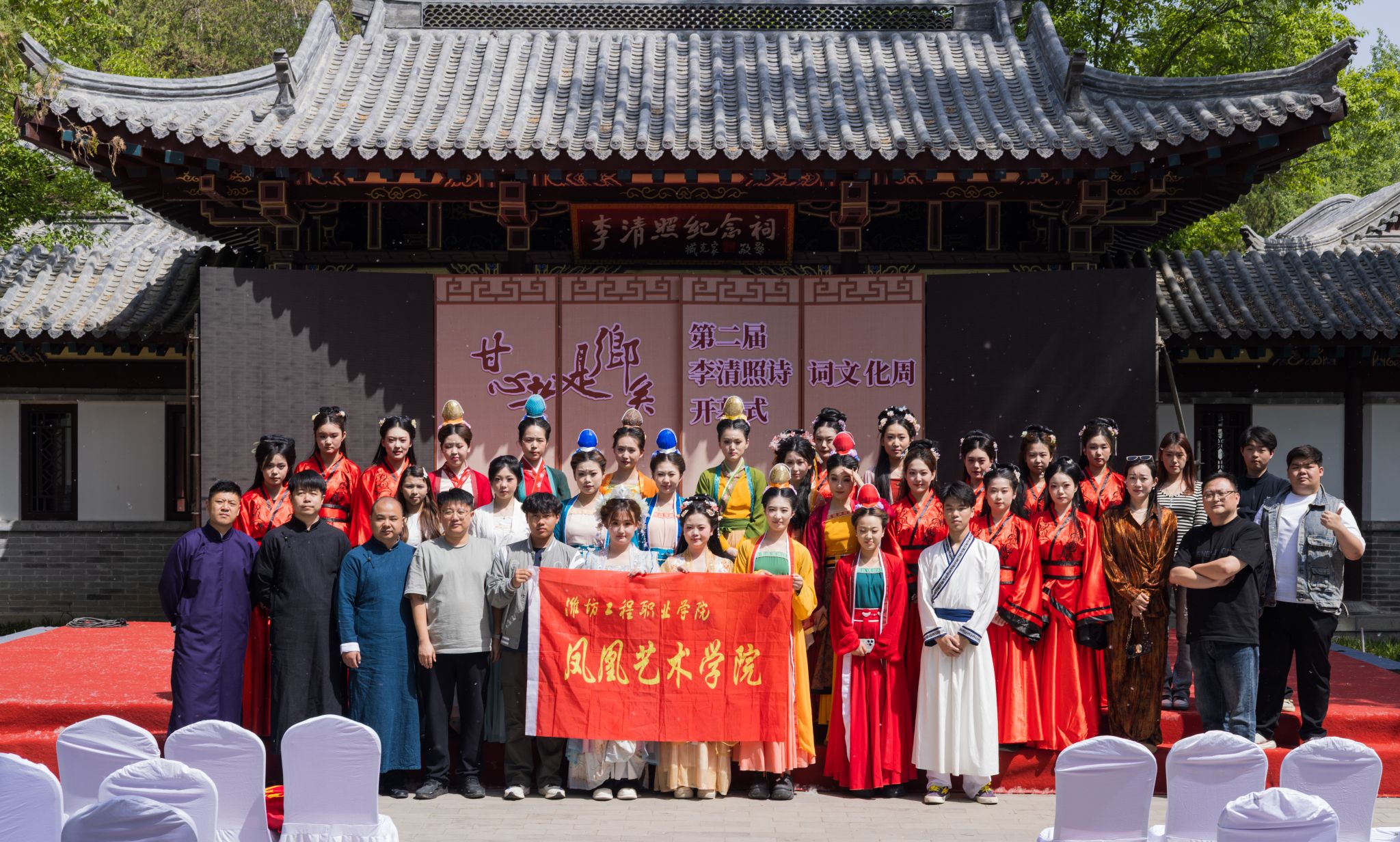4月18日,第二届青州李清照诗词文化周在范公亭公园李清照纪念祠开幕。凤凰艺术学院受邀参加开幕式演出。