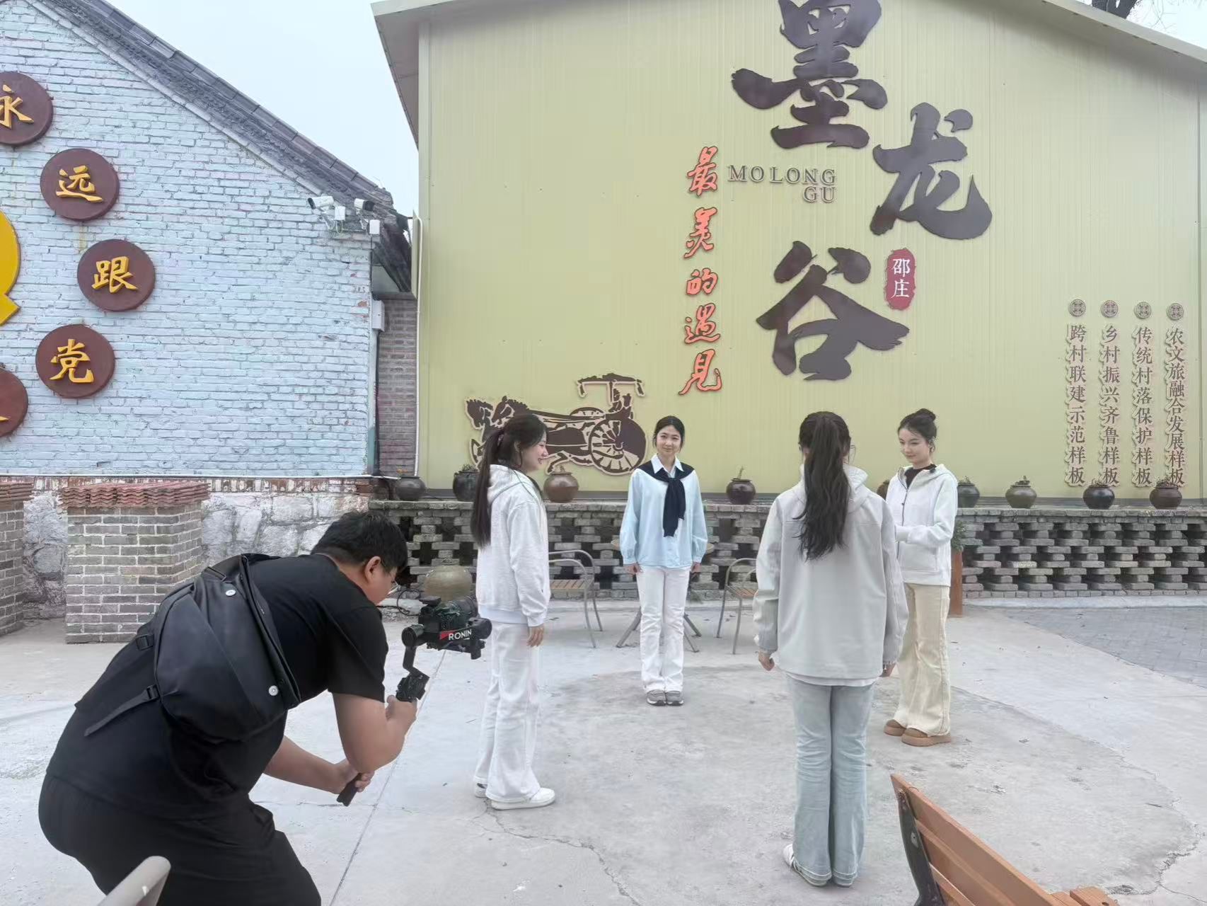 4月21日,经济管理学院旅游管理专业学生走进邵庄墨龙谷景区,参与青州市文化和旅游局宣传短视频拍摄工作。