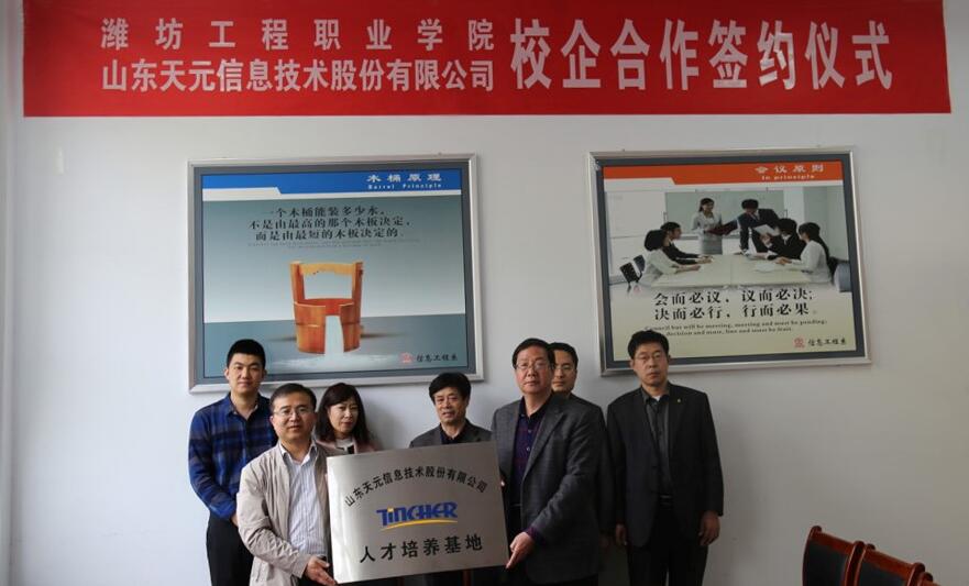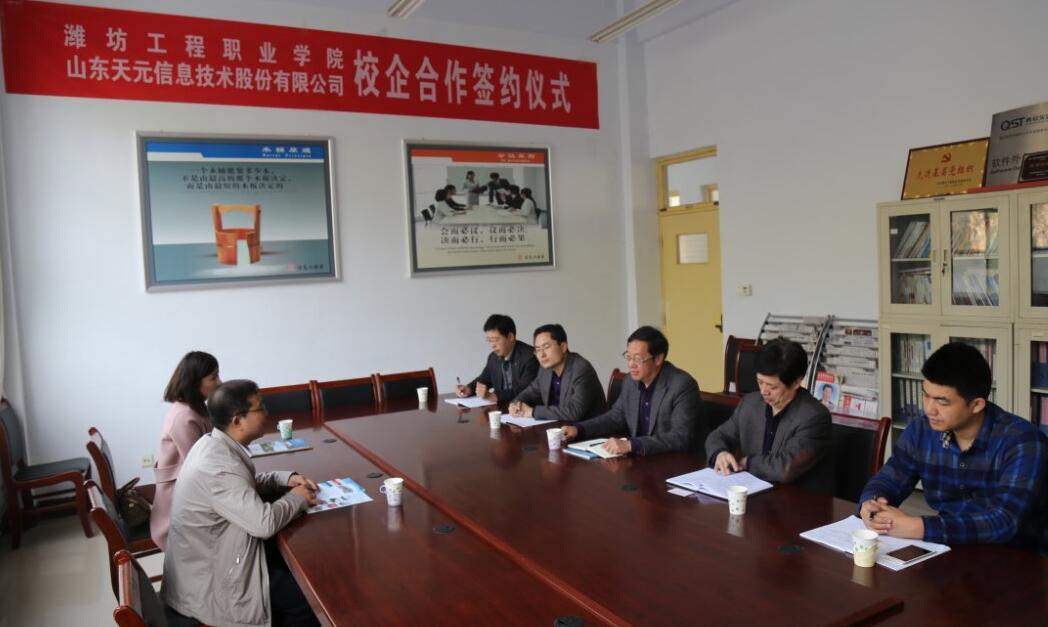 4月14日上午,信息工程系与山东天元信息技术股份有限公司校企合作签约仪式在信息工程系会议室举行。信息工程系负责同志、部分教师及山东天元信息技术股份有限公司副总经理杨洪超、人力资源部部长张红霞参加签约仪式。