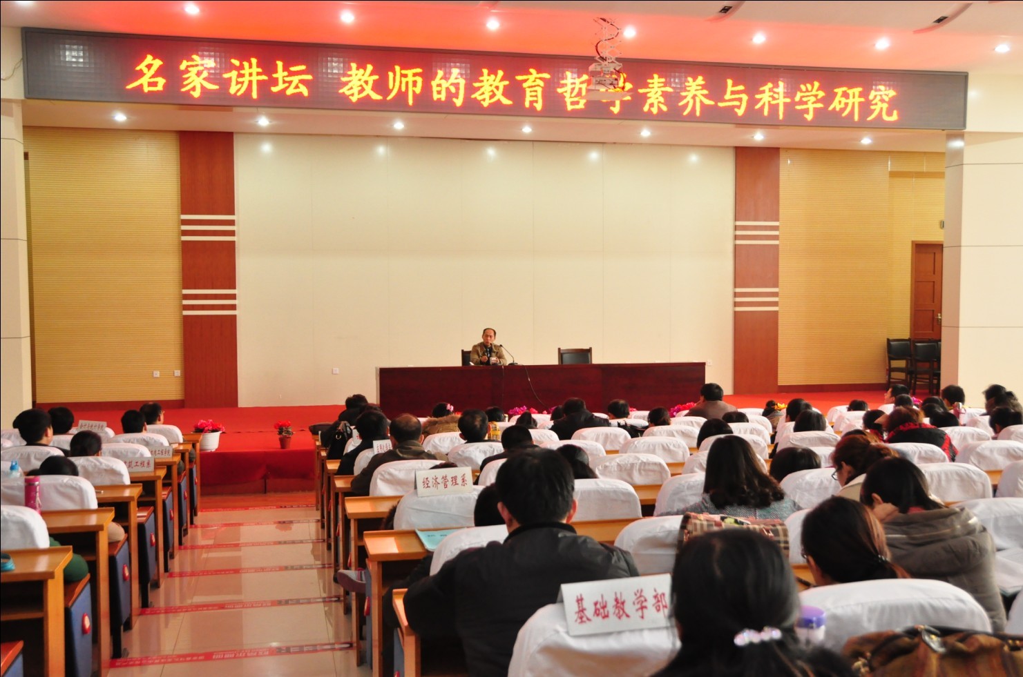 崔院长作了总结讲话。他说,高伟教授非常精彩地解读了教师的教育哲学素养与科学研究。报告内涵丰富、观点鲜明、视野开阔、高屋建瓴,具有很强的针对性、前瞻性和指导性,使我们对如何进一步搞好科研工作有了更深的了解,开阔了视野,增长了知识,启迪了思想,明确了方向。“书上学来终觉浅,要知此事须躬行”,希望全体教师要把学术报告精神落实到自己的工作和学习中去,进一步明确目标,以“菡萏花虽小,也学牡丹开”的精神,找准切入点,突破思想障碍,以更加扎实的作风,做好科学研究,全面提升自身的科研能力和水平。