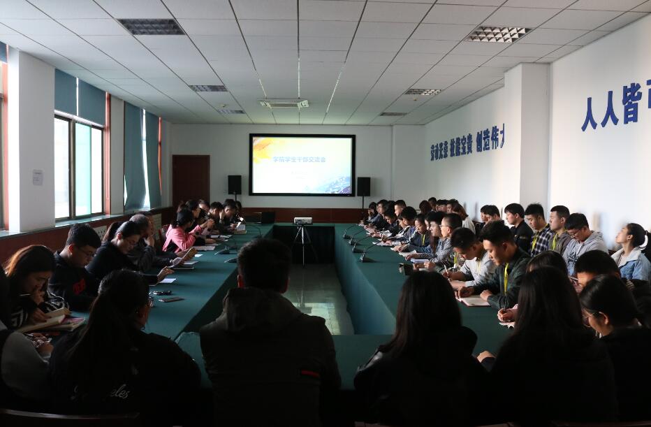 本次学生干部座谈会开在学生组织干部调整、干事纳新结束之际,旨在增加师生之间的交流,了解广大学生的需求和建议,促进后期学生组织、学生管理与活动等工作的良好开展。